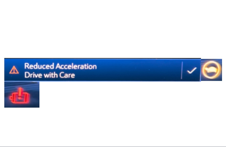 The propulsion power messages — Reduced Acceleration, Drive with Care or Propulsion Power Reduced Due to Temperature — and limited propulsion power lights are normal vehicle operating responses when High Voltage (HV) battery pack power capability is limited by state of charge (SOC) and/or temperature. (Fig. 4)