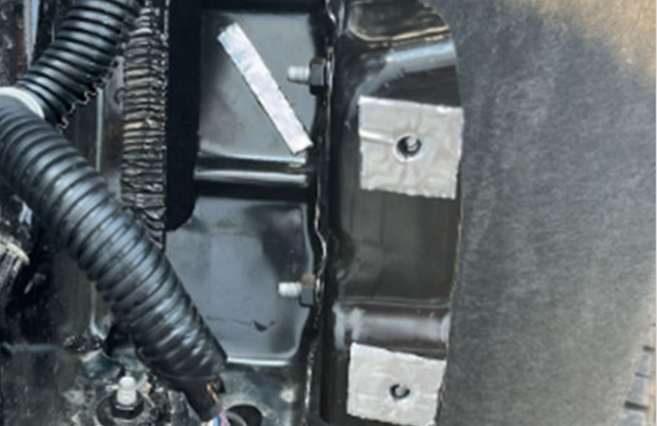 The foil-backed butyl tape (Fig. 6) will dampen vibration and eliminate resonance transfer to the surrounding body panels.