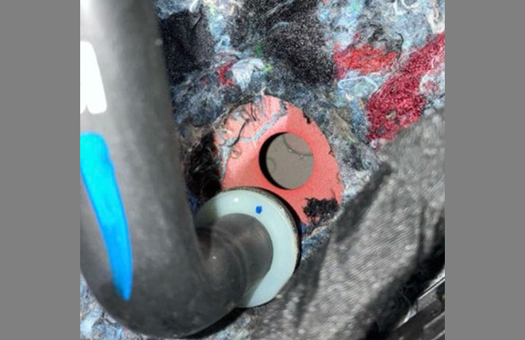 Anytime there is water intrusion in a vehicle, check porous and semi-porous components, such as carpet, fabric trim covers and foam insulation, for visible staining and odor. Isolate the odor source inside the vehicle or remove and segregate interior trim and components to isolate the source. The vehicle and interior trim should be evaluated separately to determine if the odor stays with the vehicle or the interior components.