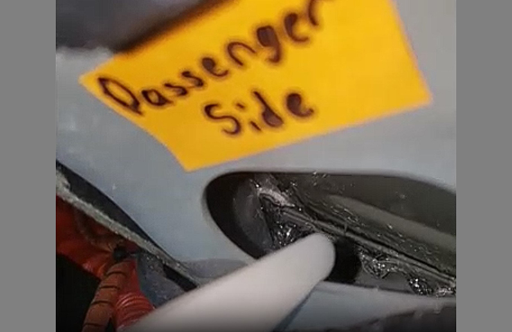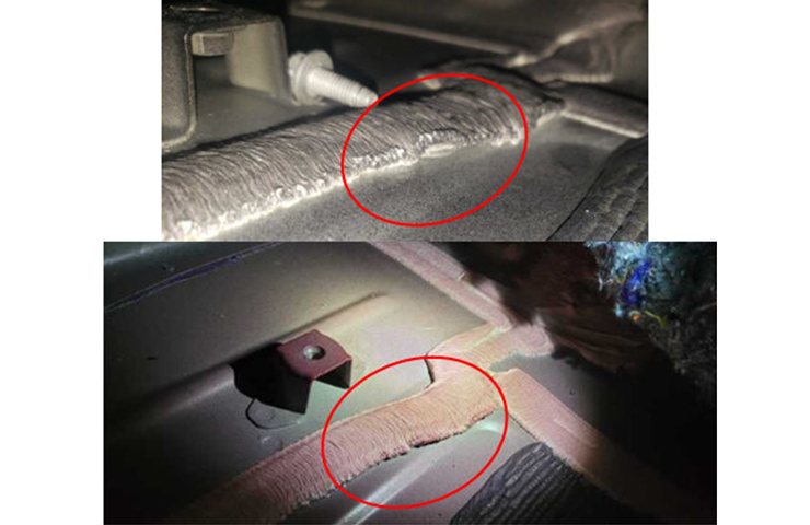 TIP: If excess sealer is present in this location, use a long pick or an 8-inch flathead screwdriver to remove it from the underbody prior to cleaning and re-sealing the area.