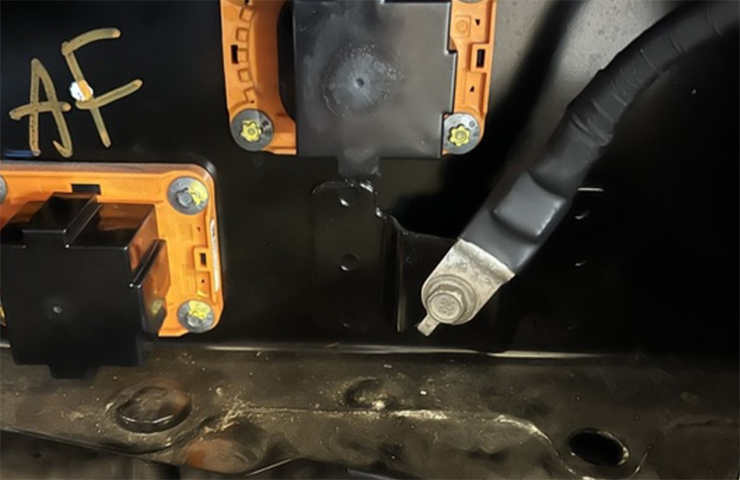 The removal of the rear ground strap bracket has required an update to the high-voltage battery pack installation procedure in Service Information. (Fig. 12)