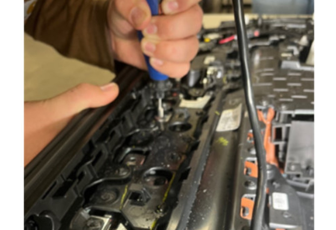 From the back of the panel, drill out the 9 welded heat stakes. (Fig. 11)