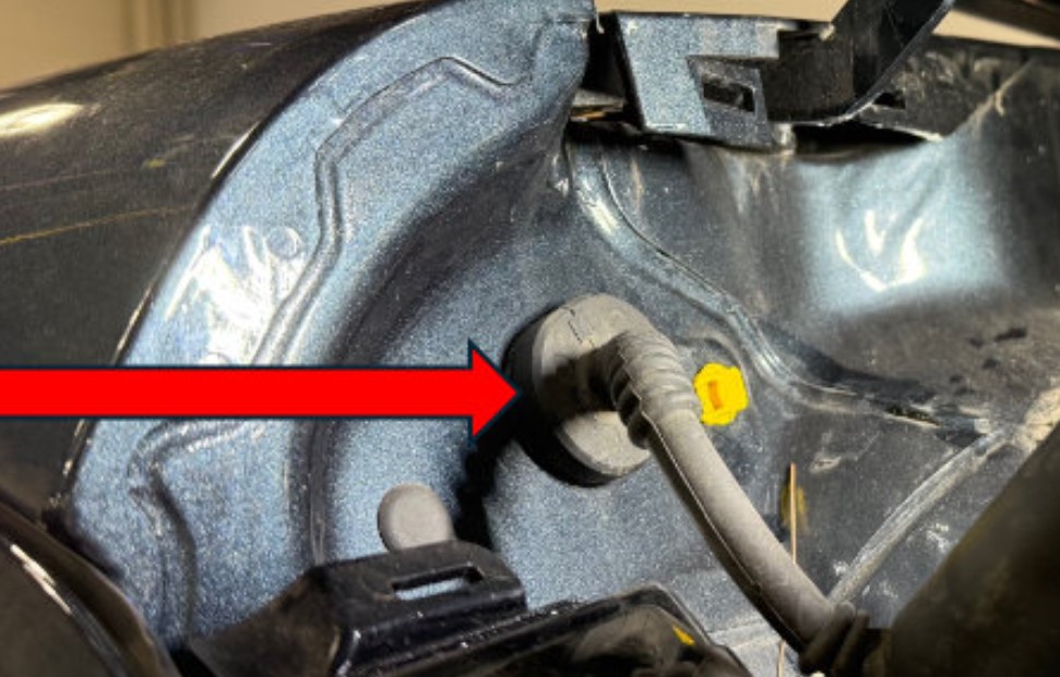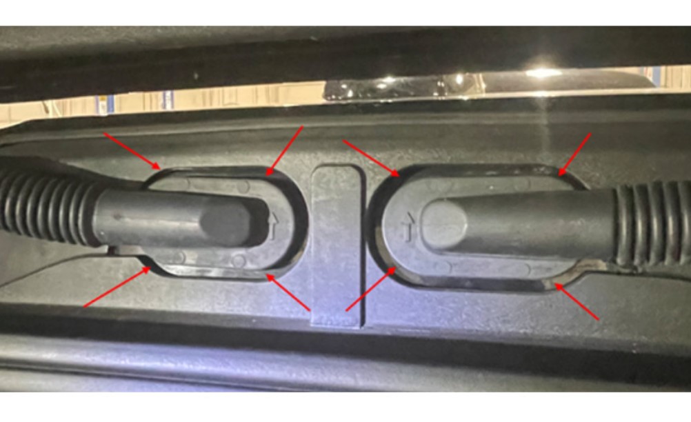 Liftgate actuator harness grommet – Visually inspect the left-hand liftgate actuator harness grommet around the entire grommet sealing surface. (Fig. 16) Reseat if necessary.