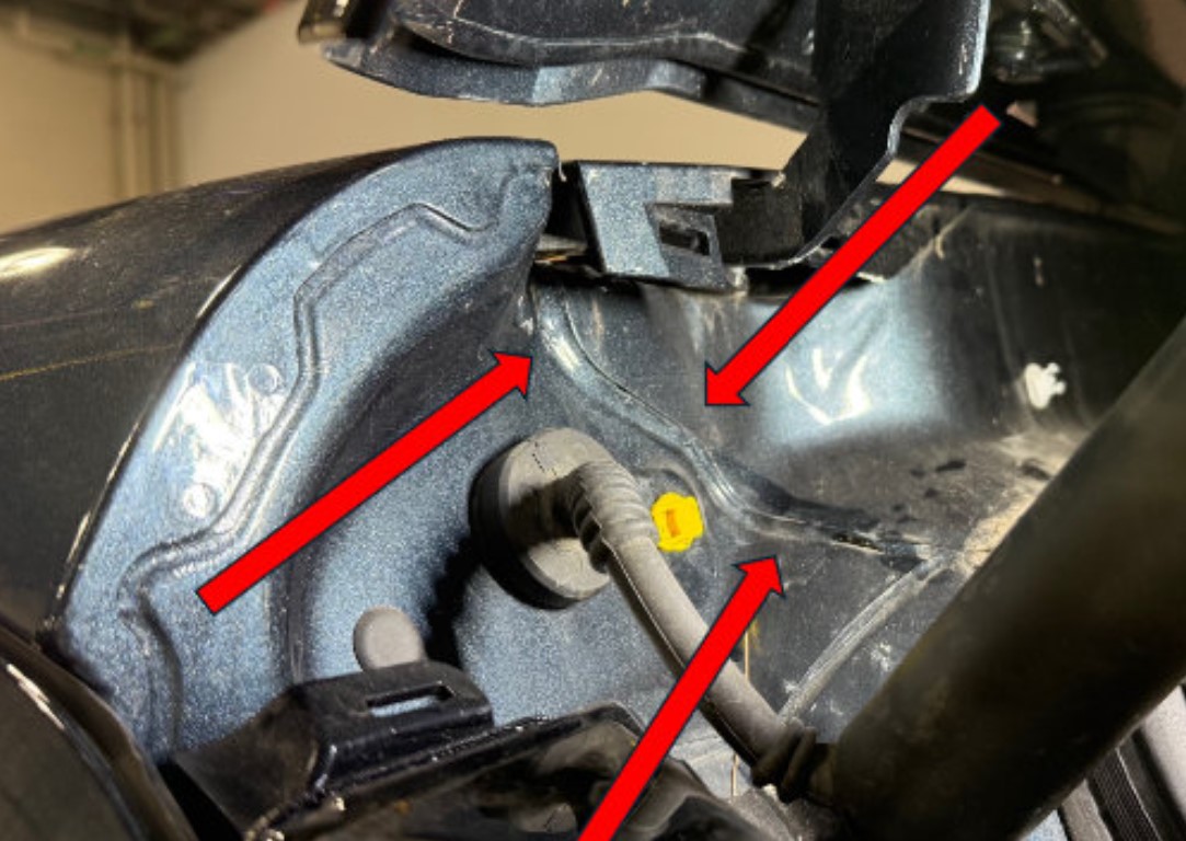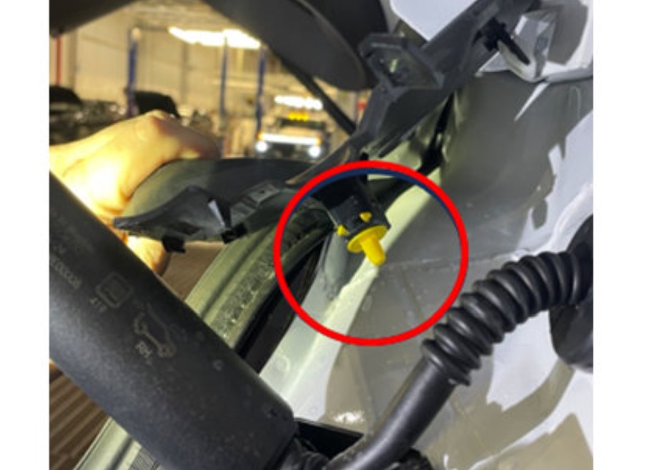 Once the new switch is installed, check for water leaking into the vehicle. Before reinstalling the left-side D-pillar interior trim, spray water over the left-rear roof ditch molding area and inspect for a water leak in the vehicle. If water enters this area, it may run down the wiring harness that leads into the 3rd-row seat switches.