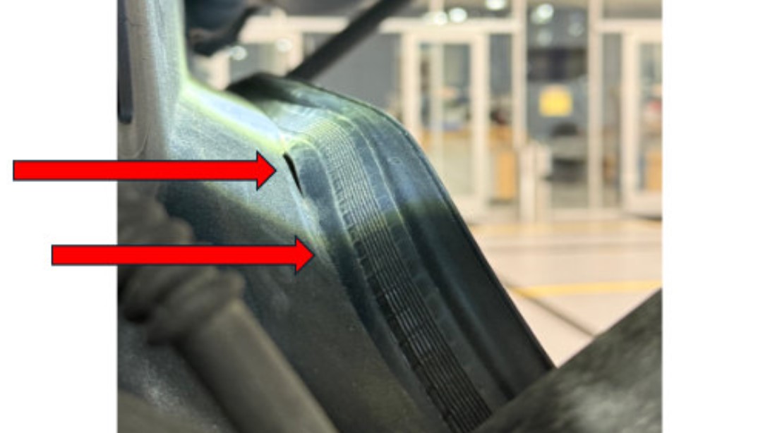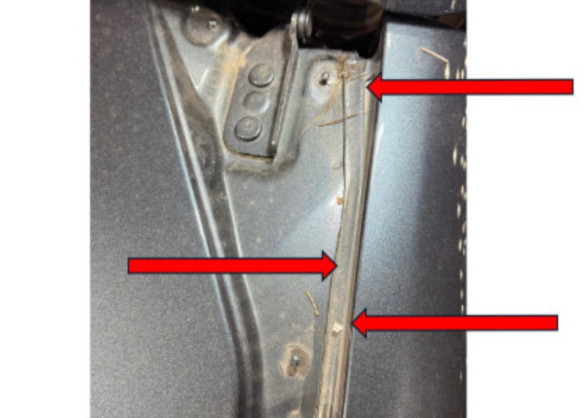 Body seam – Remove the left and right gutter trim and inspect the body seam areas for any sealant voids. (Fig. 13) Clean and reseal the seams if voids are found.