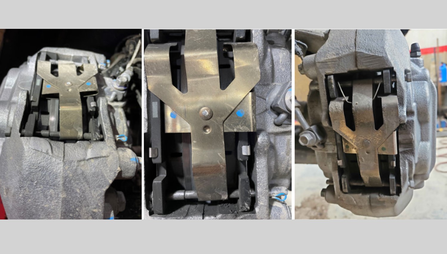 There may be a squeal or tick (rotational type noise) heard coming from the front brake calipers when the brakes are not applied on some 2023-2026 Colorado and Canyon trucks. (Fig. 6) In addition, the front brake pads may appear to be wearing unevenly.