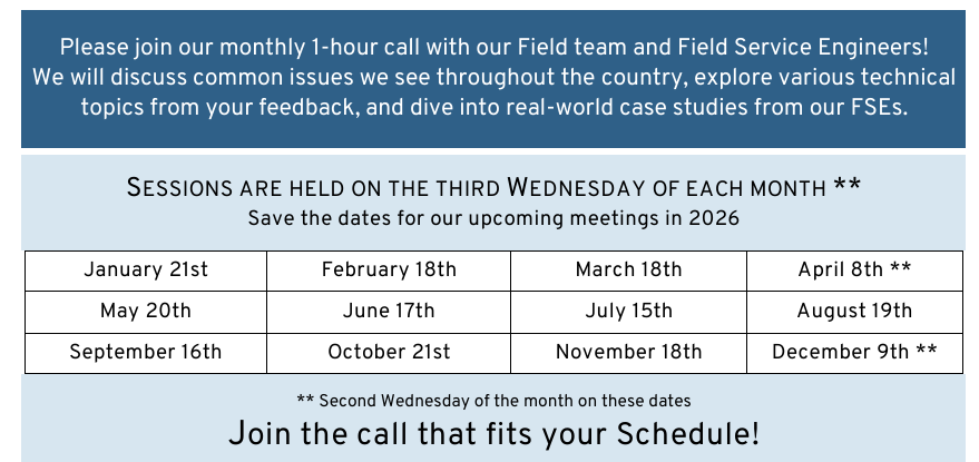 The FSE teams are always looking for potential topics to cover during the meetings. Technicians who would like to suggest a particular topic for a future meeting are encouraged to send a message to the email address listed in the Global Connect message posted each month. Future meeting discussions are based on the latest information requested by technicians, so all topic suggestions are welcome.