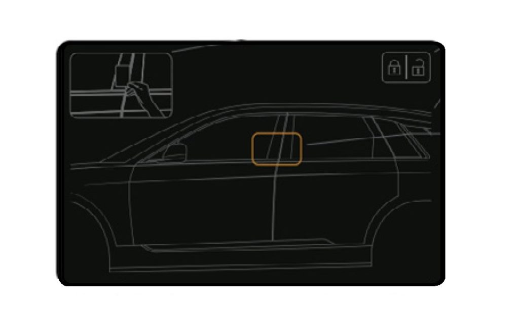 To unlock the driver’s door, briefly hold the key card to the card reader on the exterior of the vehicle with all doors locked.