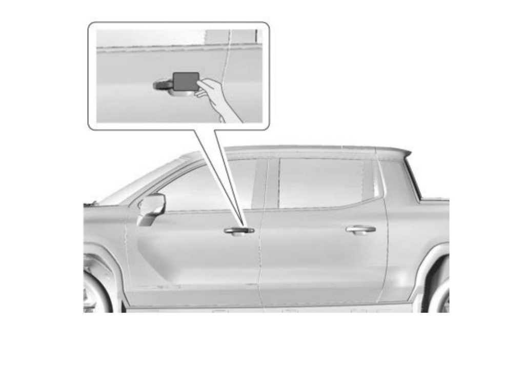 The key card uses Near Field Communication (NFC), which is the same technology used for contactless payment systems, requiring only a tap or brief hold to the card reader — the K300 Near Field Communication Backup Module — on the exterior of the vehicle to verify the correct key is presented to the vehicle. The key card placement location is on the driver’s door handle on Enclave, Silverado EV, Tahoe, Suburban, Traverse, Sierra EV, Acadia and Yukon. It is on the B-pillar applique on CELESTIQ, ESCALADE IQ, LYRIQ, OPTIQ and VISTIQ.