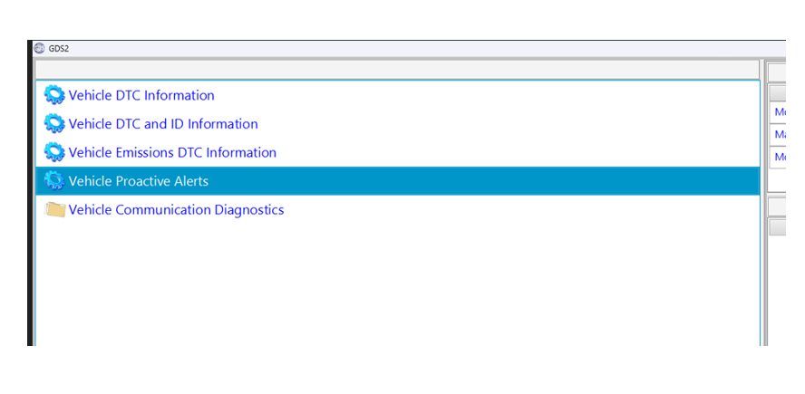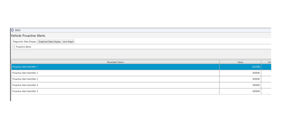 The customer may provide the Proactive Alert Identifier. Otherwise, use the scan tool to select Vehicle Diagnostics > Vehicle Proactive Alerts to read the Proactive Alert Identifiers on the vehicle. (Fig. 1-3) Currently, no associated DTCs are stored in the vehicle.