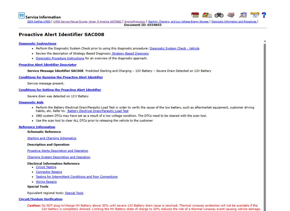 | SAC008 | Severe Drain Detected on 12V Battery (suspected out-of-date software) |
