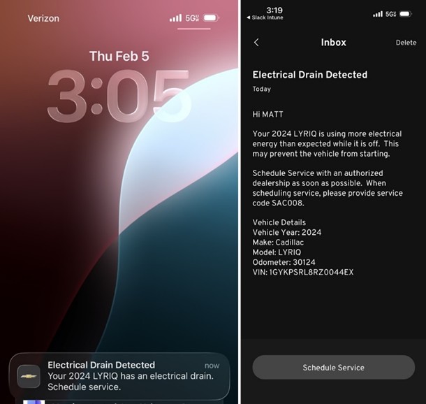 Customers must sign up for the service through OnStar to receive Proactive Alerts. Once enrolled, they may receive Push Notifications and Mobile Inbox messages through the myBrand App (Fig. 6) when a parasitic drain is detected. Additional Notification channels, such as e-mail and text messages, will be available in the future.