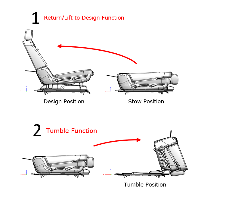 In addition, cycle the seat from stow to tumble several times, ensuring the floor latch assembly secures to the striker and the floor latch spring engages.