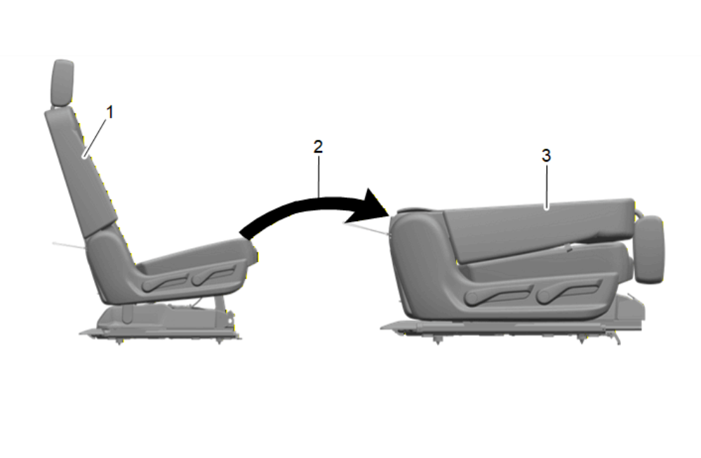 Lift the rear lever on the outboard side of the seat to release the seatback. The seat will fold forward to create a flat load floor. Lift the lever again to release the rear of the seat from the floor. The seat will tumble forward.