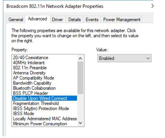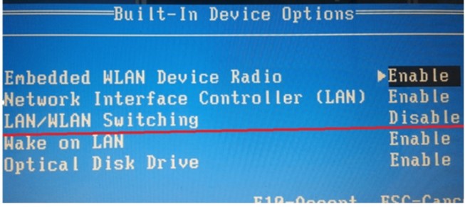 LAN Switching is a feature in Windows used to define how network interface adapters (ethernet or wireless) are to operate. (Fig. 11) Disabling this setting in BIOS tells the PC not to disable one network (ethernet or wireless) when another network is detected. Using the internet browser, search your PC Make and Model for the function key to enter BIOS during the PC boot.
