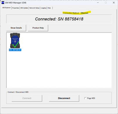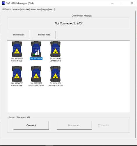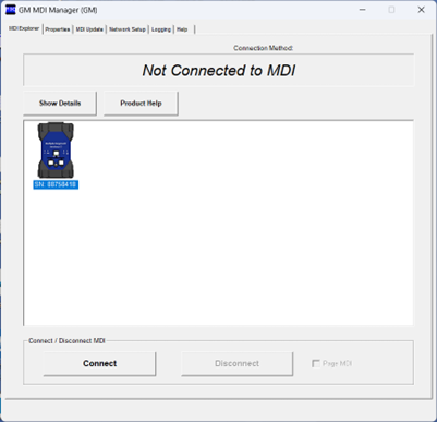 The MDI Manager application is used only for MDI configuration, firmware updates and enabling functionality. Connection to a device from the MDI Manager does not use SAE J2534.