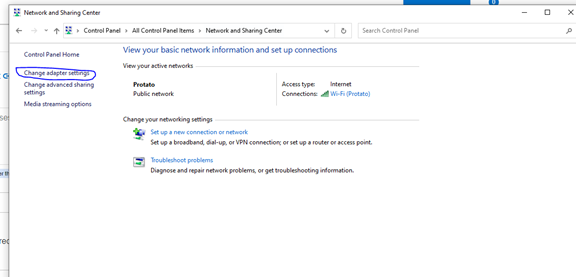 - Select Change adapter settings. (Fig. 18)