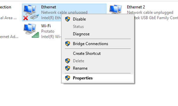 - Under Ethernet, select Properties. (Fig. 19)